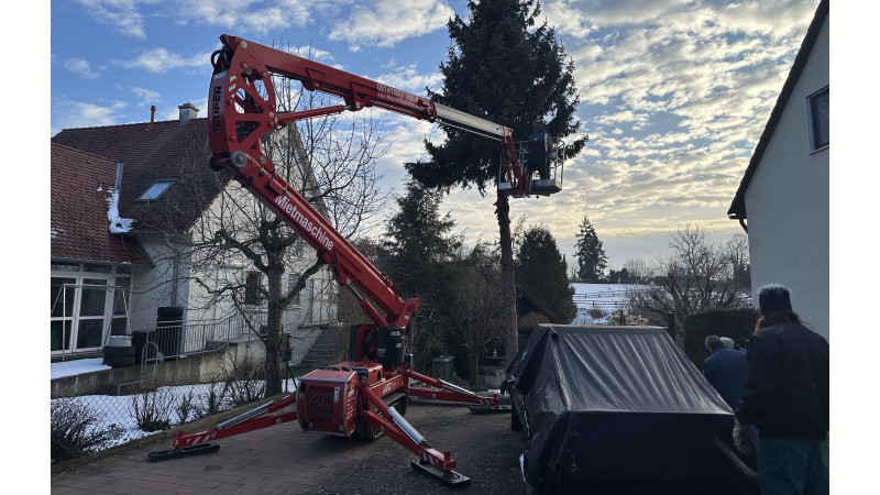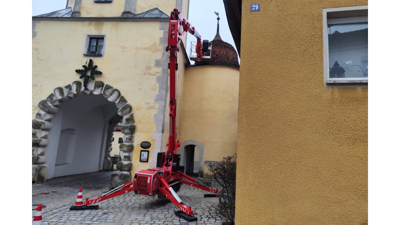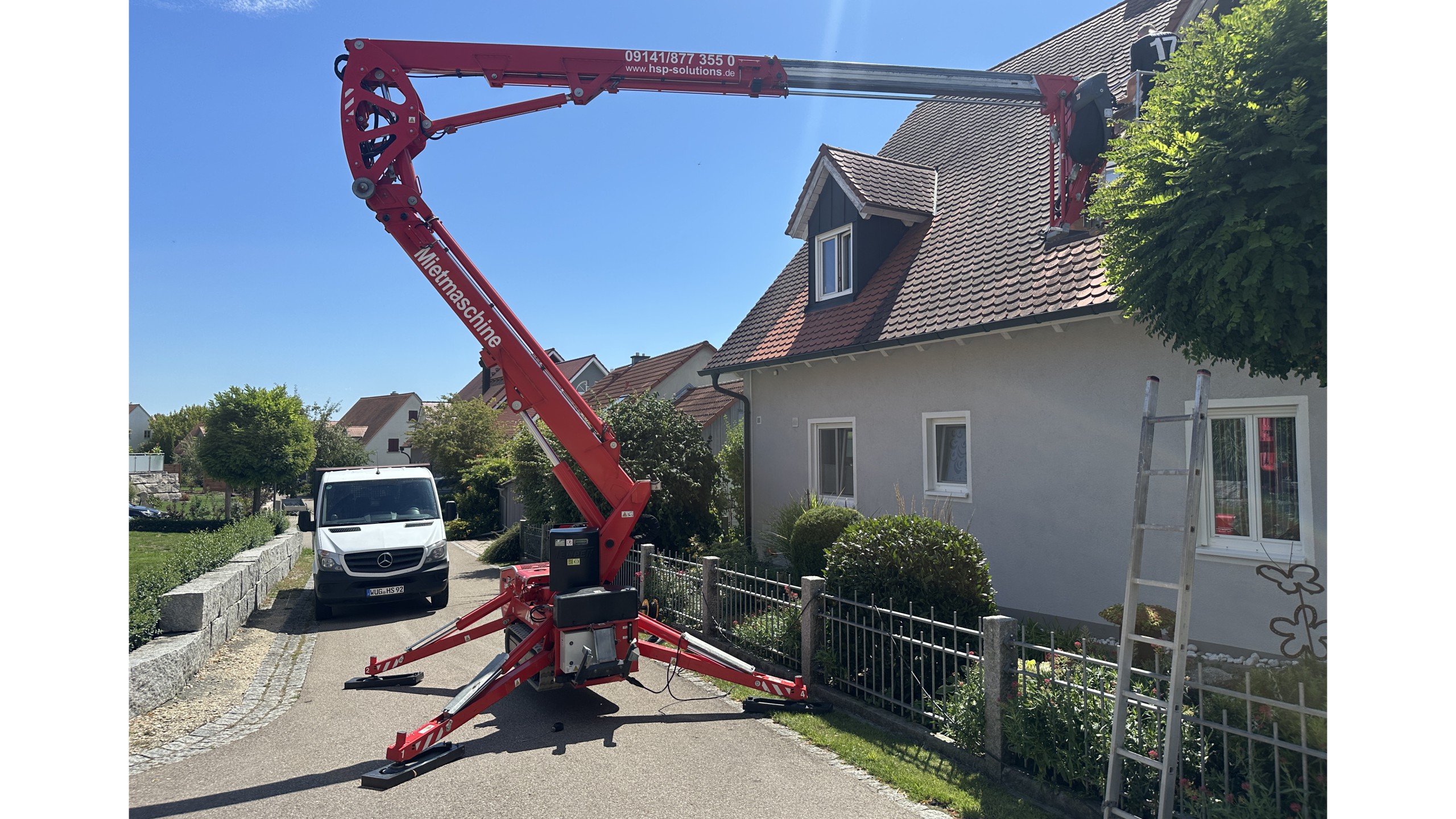 Außerdem lässt sich die Arbeitsbühne mit wenigen Handgriffen zu einem Kran, mit beachtlichen 200 kg Nutzlast über den gesamten Arbeitsbereich, umbauen.